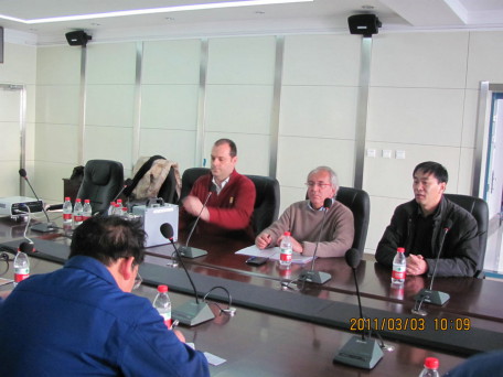 2011年俄方技術(shù)總監(jiān)來我公司針對電廠大型機組安裝超聲波除水垢機器,親臨現(xiàn)場制定安裝方案。