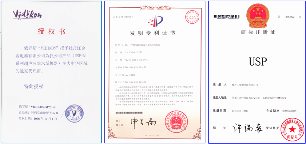 2013年5月,由黑龍江省工信委科技處組織,對USP-M系列超聲波除垢裝置進(jìn)行了新產(chǎn)品鑒定,鑒定結(jié)論:“屬國內(nèi)外首創(chuàng),其技術(shù)水平達(dá)到國內(nèi)領(lǐng)先”。